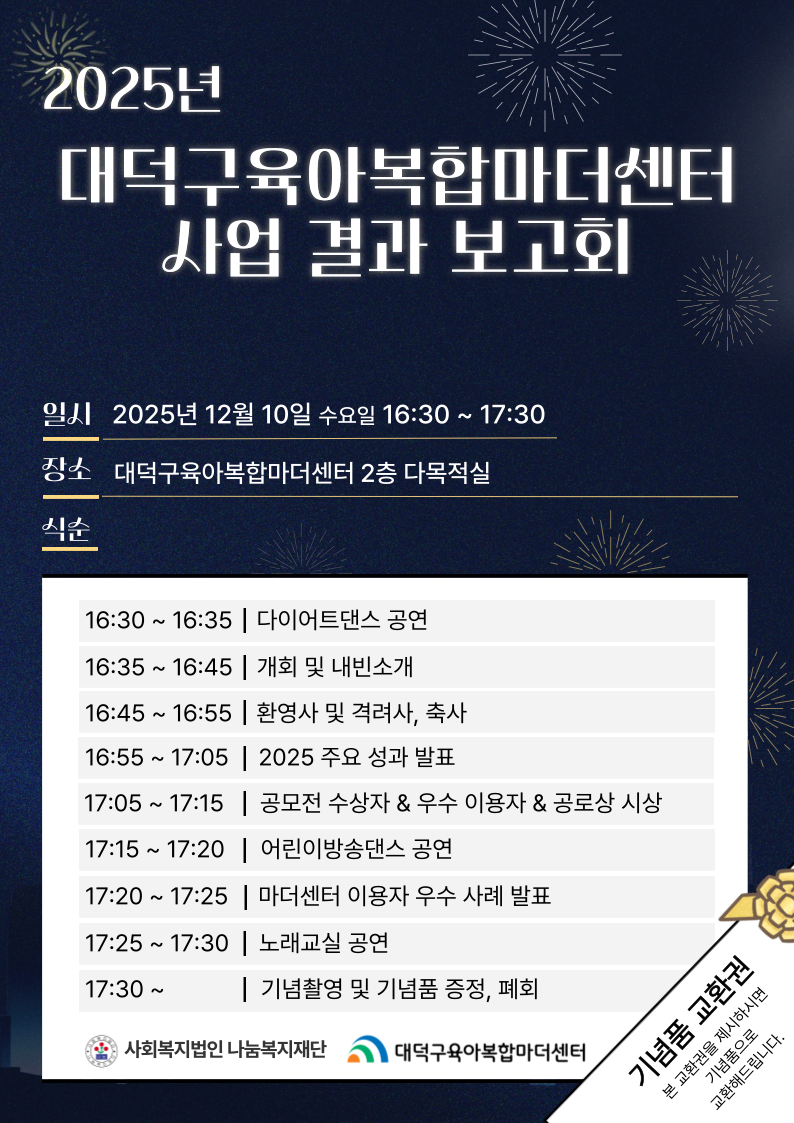 대덕구육아복합마더센터 『2025년 사업결과보고회』를 개최합니다.