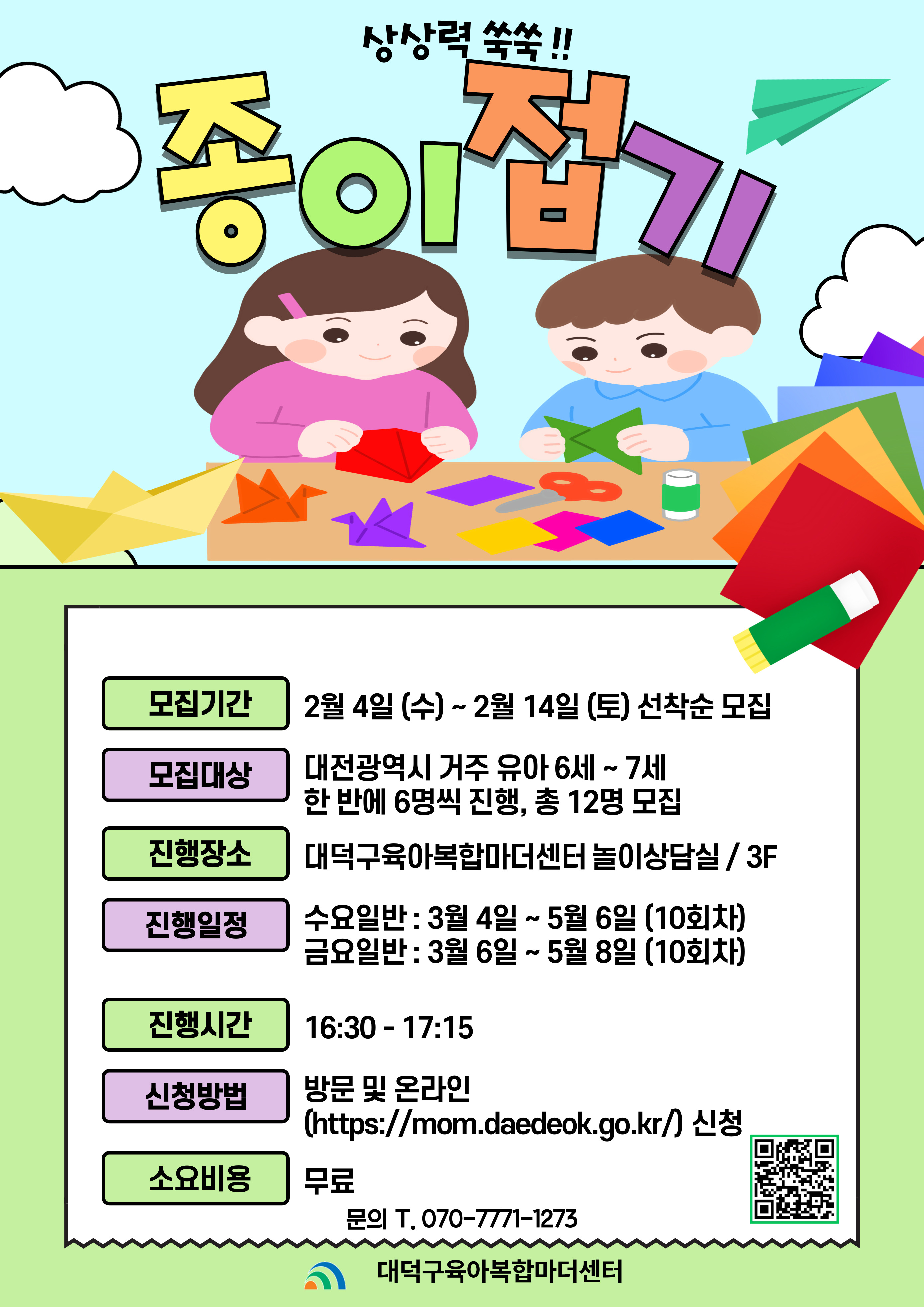 ★ 상상력 쑥쑥!! 종이접기 프로그램 수강생 모집