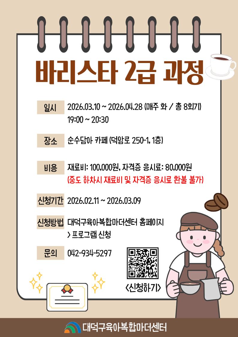 [바리스타2급], [쿠킹클래스], [수어교육], [캘리그라피] 모집 안내