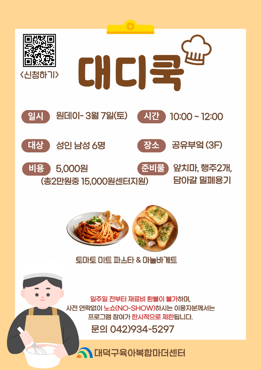 ★(2026-1분기) 대디쿡 프로그램 모집(3/7원데이, 2만원중 15,000원 센터지원)