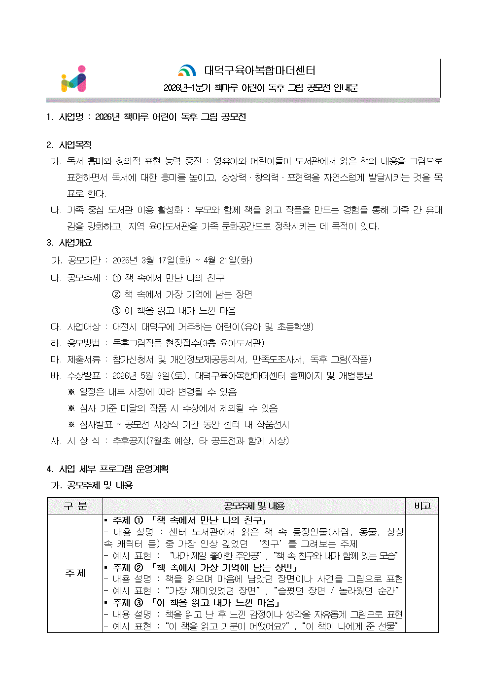 붙임_2026년_대덕구육아복합마더센터 육아도서관 독후그림 공모전_신청서 서식.hwp [102400 byte]